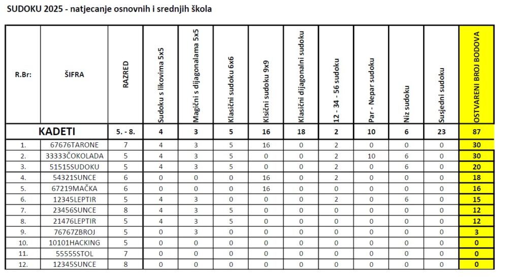 Sudoku natjecanje dokazalo je da logičko razmišljanje, strpljenje i kreativnost mogu biti jednako zabavni kao i natjecateljski. Čestitamo svim učenicima na sudjelovanju i veselimo se novim izazovima!